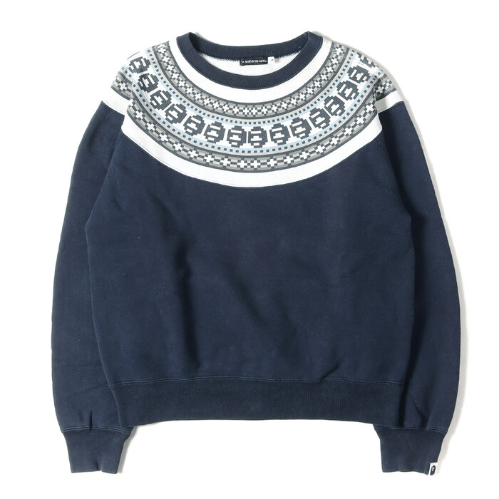 00s 猿顔ノルディック柄クルーネックスウェット