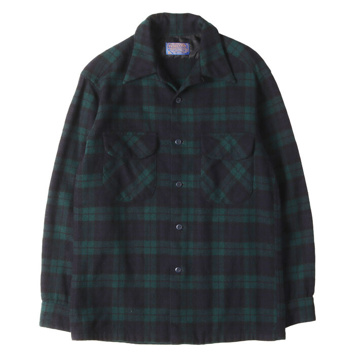 70s ブラックウォッチチェックウールオープンカラーボードシャツ