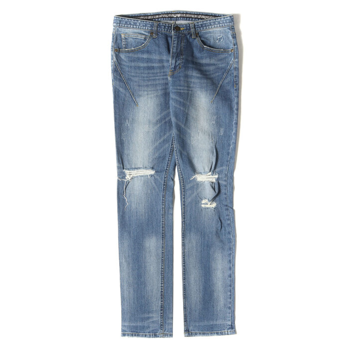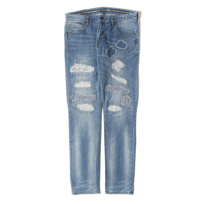 クラッシュリペア加工ストレッチスキニーデニムパンツ