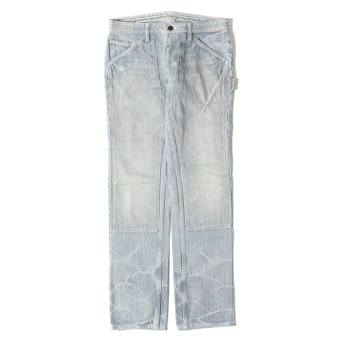 08SS BIRDS期 ヴィンテージ加工ダブルニーペインターヒッコリーデニムパンツ
