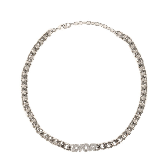 クリスタルラインストーンロゴチェーンリンクネックレス