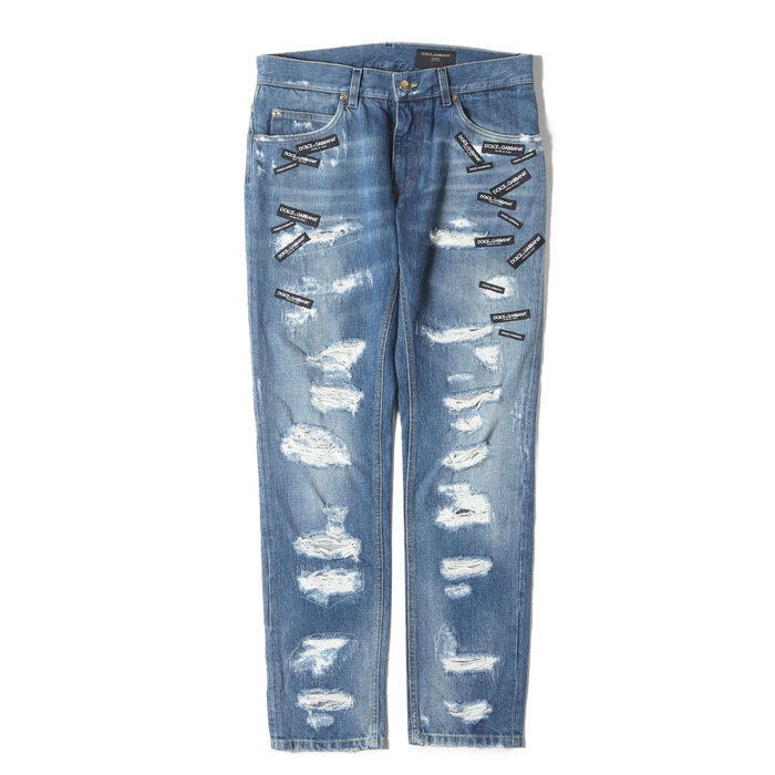ロゴチケットクラッシュ加工デニムパンツ(GY70CD G8Y80)