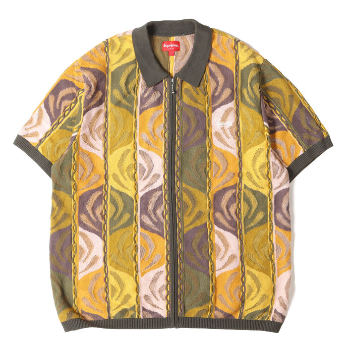 22SS アブストラクト総柄ジップニットポロシャツ(Abstract Textured Zip Up Polo)