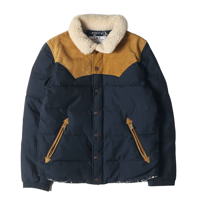 裏地バンダナ柄スウェードヨーク襟ボアダウンジャケット