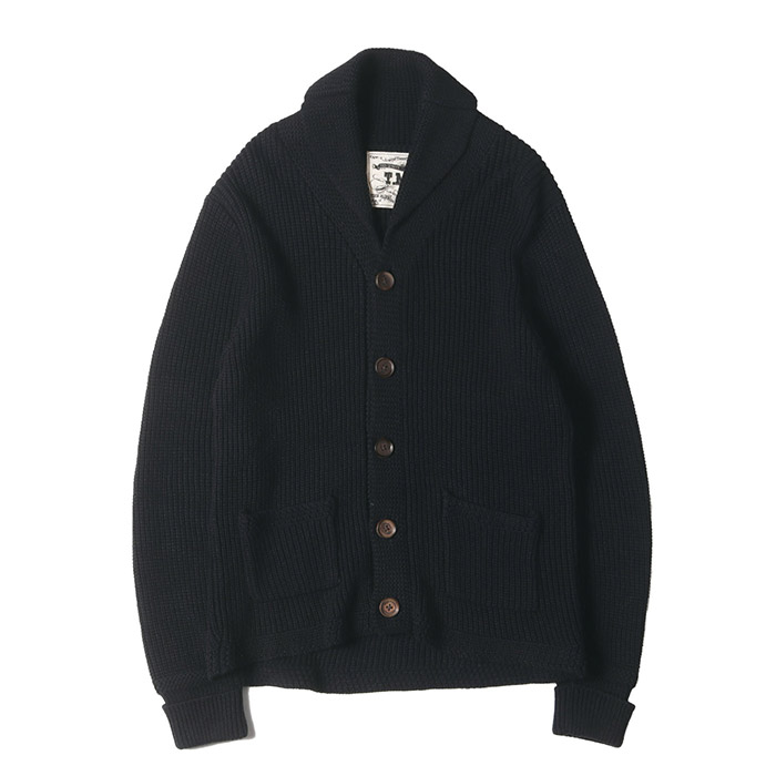 リネン/コットンニットショールカラーカーディガン