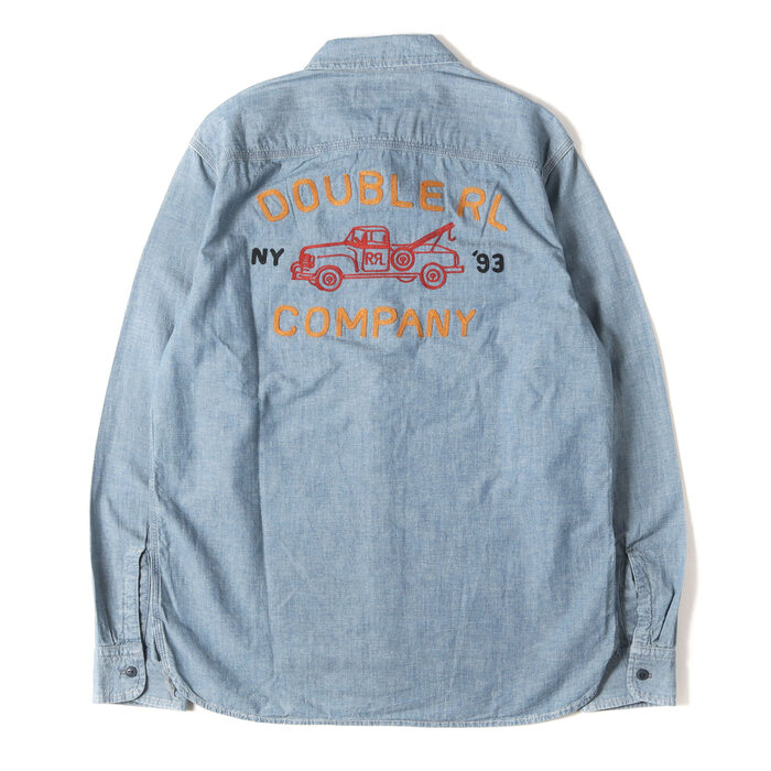 チェーン刺繍シャンブレーワークボタンシャツ(Embroidered Indigo Chambray Work Shirt)