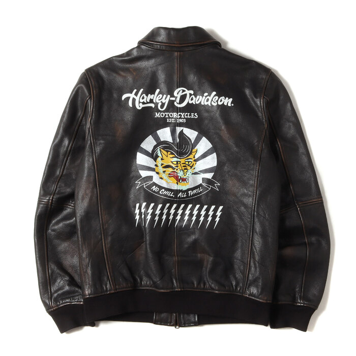 ヴィンテージ加工タイガーペイントデザインカウレザーA-2ボンバージャケット