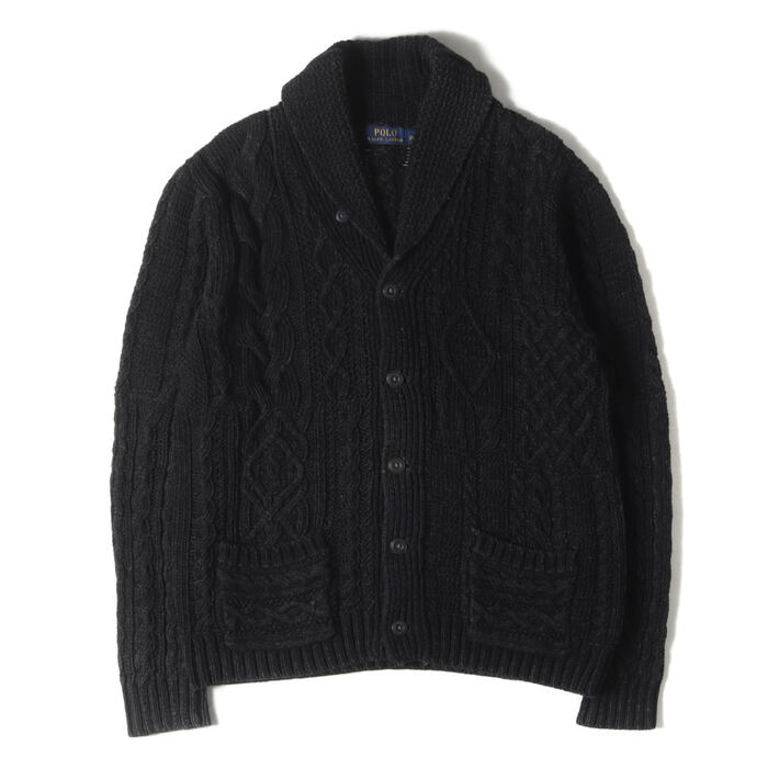 • USED加工 ブラックインディゴローゲージコットンニットカーディガン