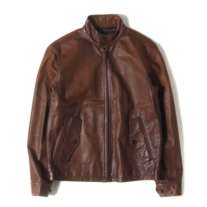 ヴィンテージ加工スタンドカラーカウレザーハリントンジャケット