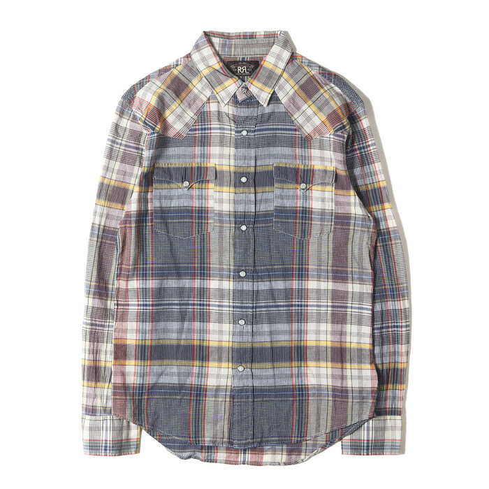 • コンチョボタン付きクレイジーマドラスチェックウエスタンシャツ