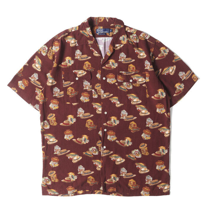 90s ハット柄オープンカラーレーヨン半袖シャツ
