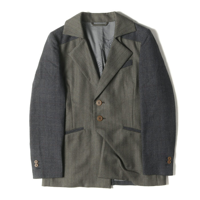 21AW グレンチェック×ピンストライプミックス変形ウール2Bテーラードジャケット(Distortion Mix Jacket 219025 2002)
