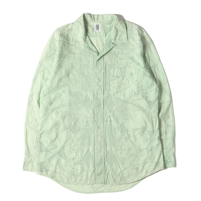 ジオメトリック刺繍オープンカラーローンドレスシャツ(HA62FJ417)