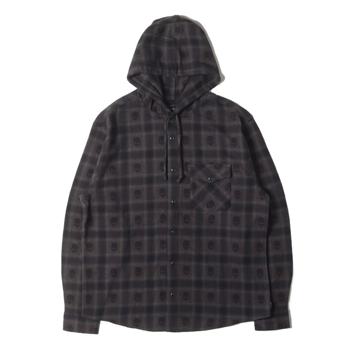25AW ×NUMBER (N)INE ドクロ柄フード付きチェックフランネルシャツ(Hooded Flannel Shirt)