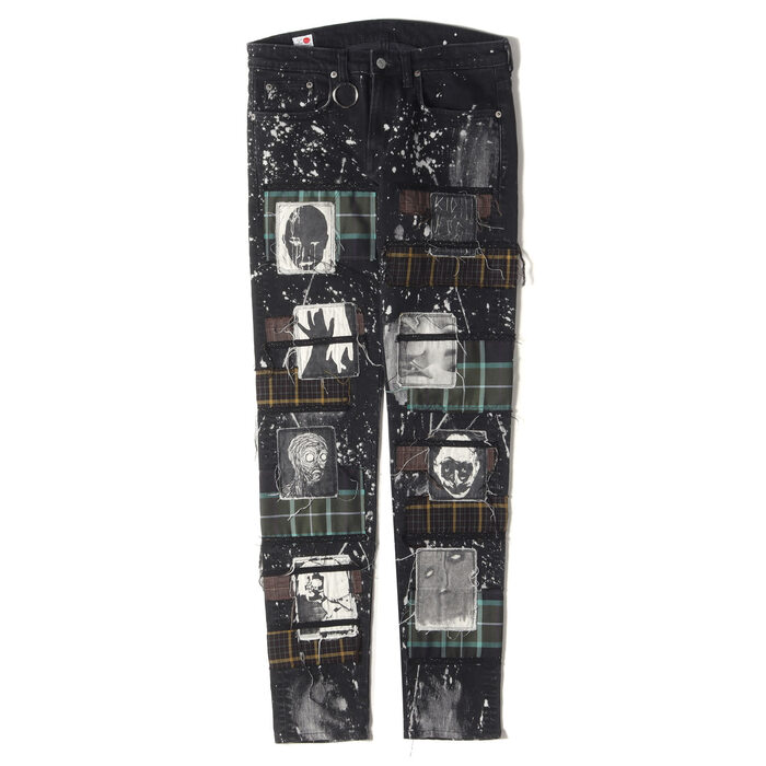 ×EDWIN パッチストレッチブラックデニムスキニーパンツ(Patch Slim Tapered Pants KLED21)