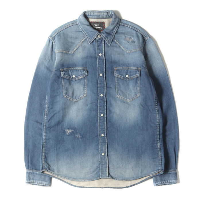 ヴィンテージクラッシュリペア加工スウェットデニムウエスタンシャツ