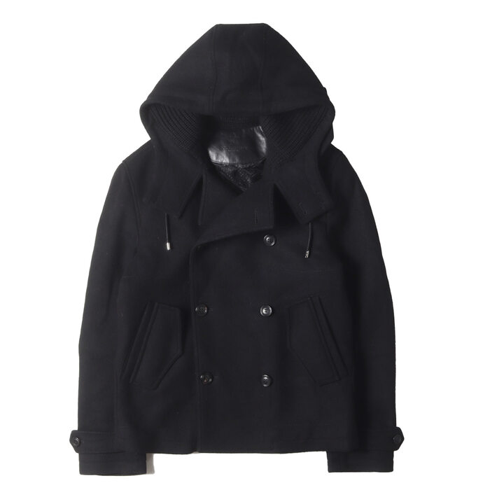ニット襟ダブルブレストショートメルトンコート