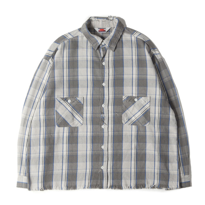 • 22AW ×SHERMER ACADEMY ダメージ加工オーバサイズフランネルシャツ(FRANNEL SHIRT)