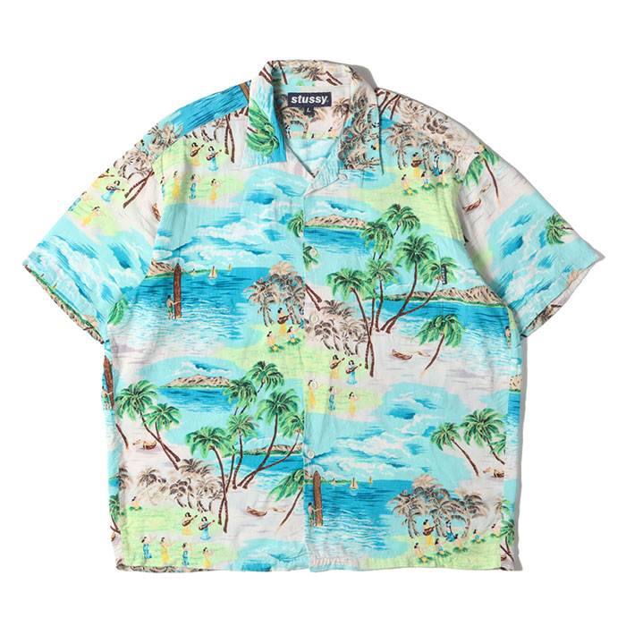 90s OLD STUSSY ハワイアン柄レーヨンアロハシャツ(USA製)