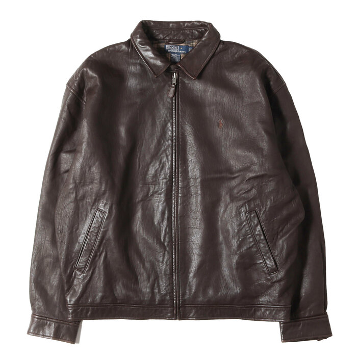 90s 裏地チェックラムスキンレザースイングトップジャケット